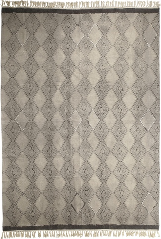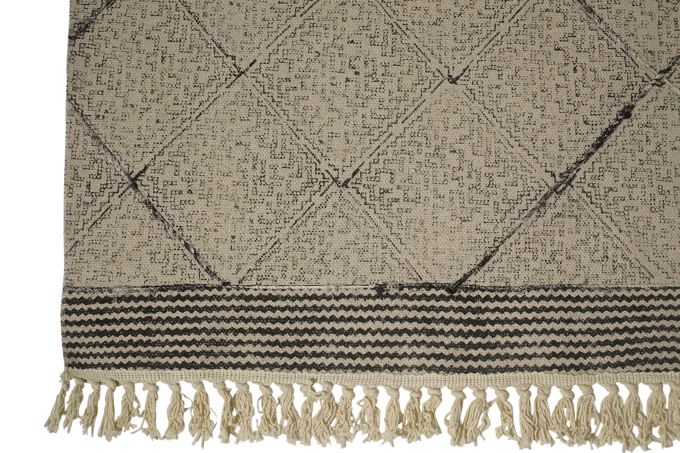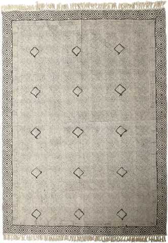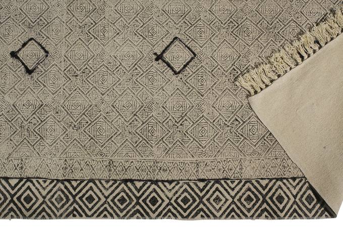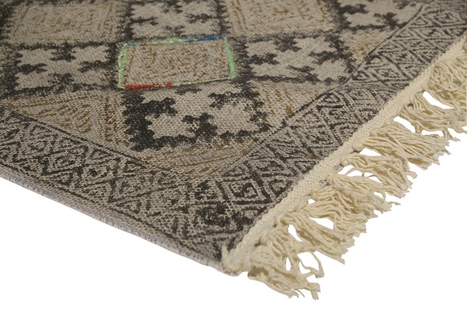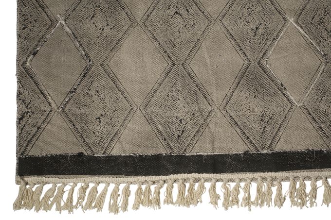שטיח אפור כהה בעיצוב גיאומטרי עשוי כותנה בעבודת יד