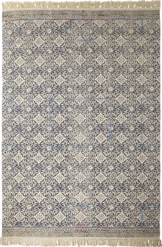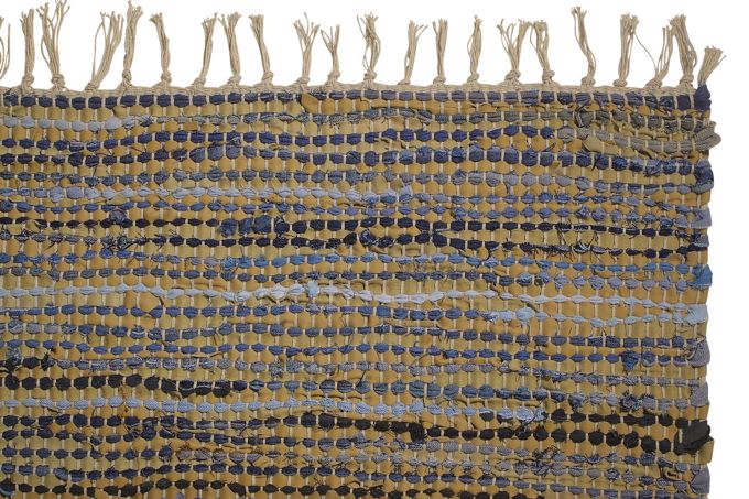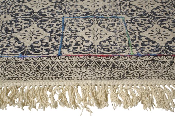 שטיח כותנה מעוצב בטקסטורות כחולות עם רקמה