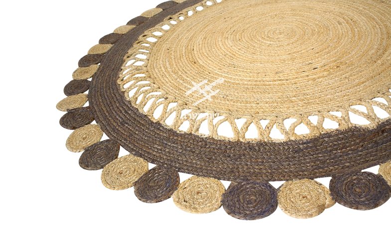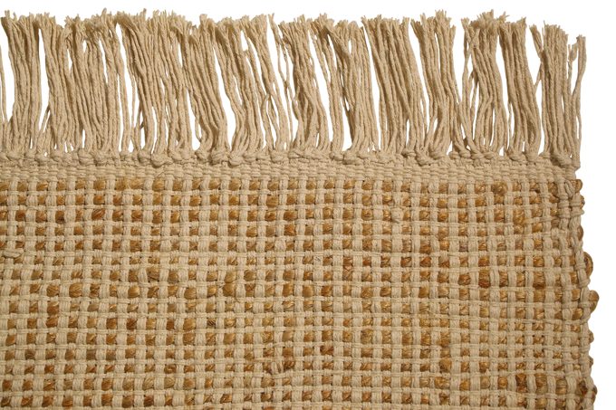 שטיח חבל נארג שתי וערב יחד עם חוטי כותנה ופרנזים מושלמים
