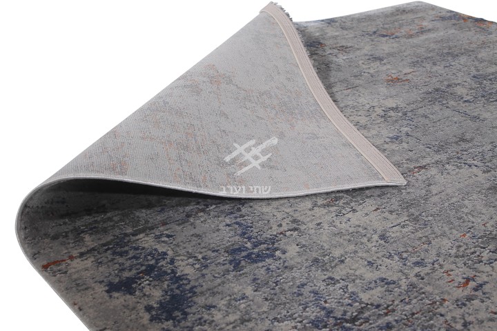 שטיח אבסטרקט מעוצב בכתמי כחול ונגיעות בכתום