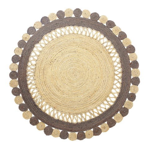 שטיח חבל עגול מעוצב בטקסטורות כוורת מחוטי כותנה