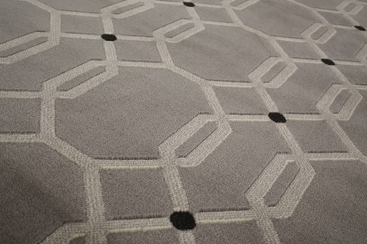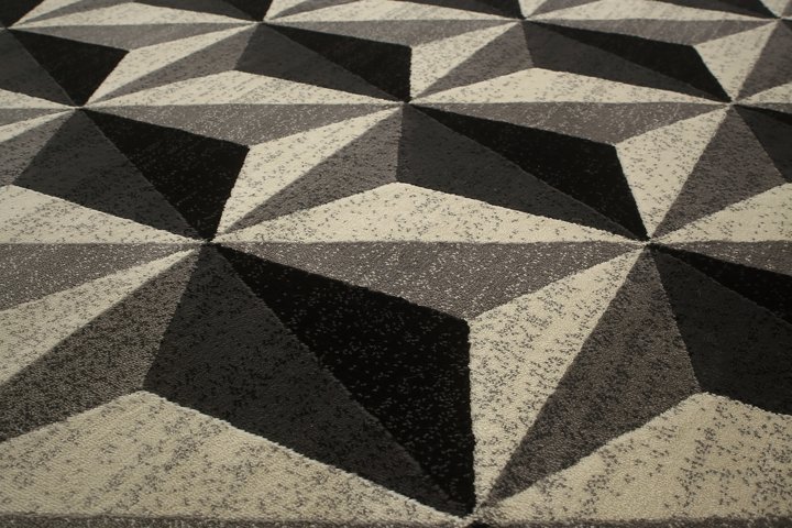 שטיח גיאומטרי אפור מעוצב בטקסטורות מוגדלות